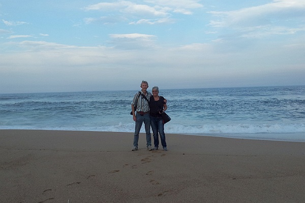 Het strand is 2 minuten lopen vanaf de lodge maar valt erg tegen. Heel veel vuil en echt strandweer is het niet. In de verte zie je Durban liggen. Het enige wat wij doen is een foto van ons beiden met de oceaan op de achtergrond maken welke we vanavond naar de familie thuis willen sturen.