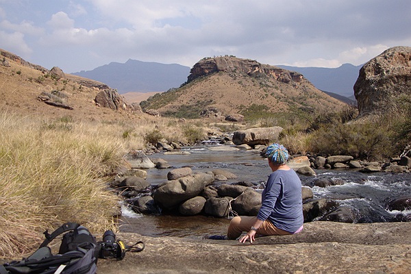 Voor de terugweg nemen we een wandelpad langs een riviertje terug naar de lodge waar we af en toe even heerlijk aan het water in het zonnetje gaan zitten. Alles bij elkaar is het toch een wandeling van 3,5 tot 4 uur geworden.