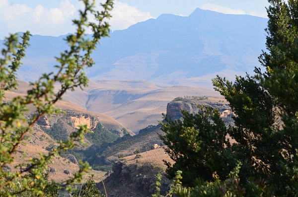 Volgens zeggen was het zo'n 45 minuten lopen naar de grotten. Mis hoor, het blijkt voor ons zo'n 1,5 uur klimmen en dalen te zijn. Je bent dus best wel moe als je bij de grot aankomt. Hier krijgen we, door een gids die daar een hele dag verblijft, uitleg over de rotsschilderingen, waarvan de oudste wel 3000 jaar oud is. Ze weet ons eveneens veel te vertellen over de Khoisan, de bosjesmensen die hier leefden. Ze doet zelfs de (klik)taal die de mensen spraken na, wat toch wel grappig klinkt.