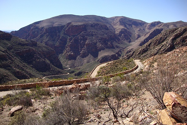 Het is inmiddels al vrij warm geworden en als we bij de tent terug zijn zetten we even een bakje koffie en trekken gauw wat kleren uit. We hebben nog vrijwel een hele dag voor ons en besluiten de Swartbergpas te gaan rijden. Geweldig wat een mooie route en wat een prachtige vergezichten je vanaf de berg hebt. Het is wel een avontuurlijke rit over smalle, steile en stoffige zandwegen en ik kan me voorstellen dat bij regenval de pas afgesloten is.