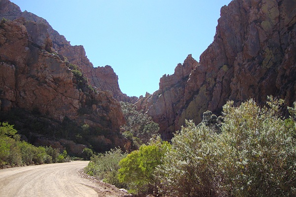 Aan de andere kant van de berg rijden we via de R407 weer richting Oudtshoorn. Tussen de plaatsjes Klaarstroom en De Rust rijden we door de Meiringspoort, een geweldig mooie weg door een kloof. Halverwege deze weg maken we nog wel een korte stop bij een waterval. De Meiringspoort met waterval zijn Unesco Werelderfgoed en echt de moeite waard om te rijden.